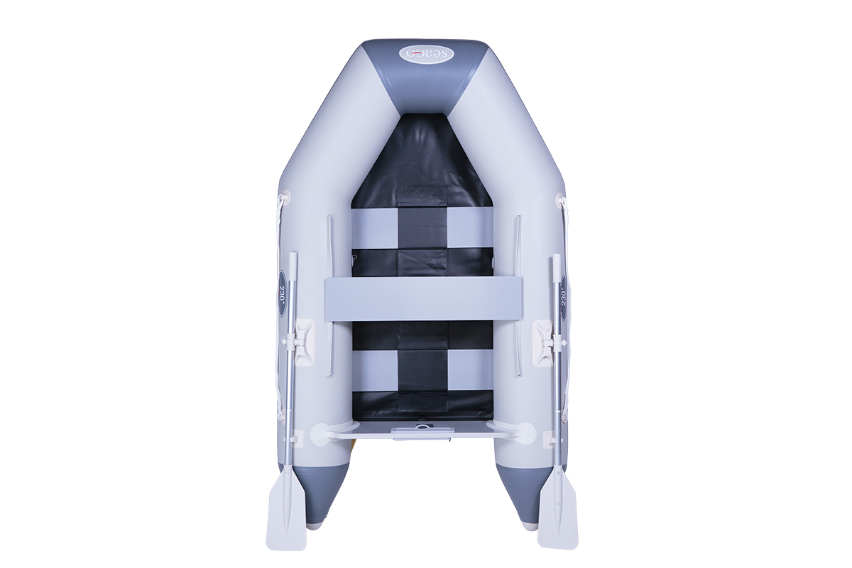 The 230-SL tender is Seago’s smallest tender with a wooden slatted floor and transom. It is traditionally shaped with cone shape sponsons, this light weight boat gives enough room for two people up to a 4hp engine. The 230-SL is lightweight and easy to store using the provided carry bag.