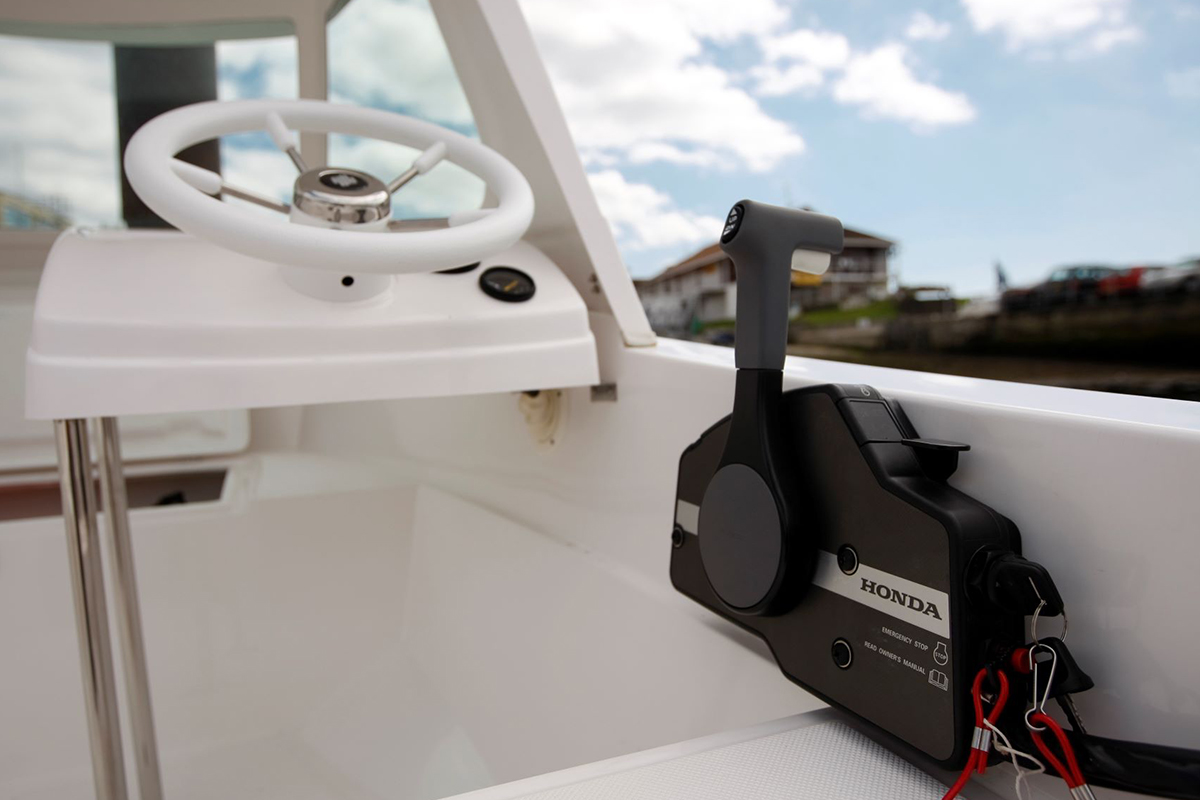 When onboard you have the space and feeling of a much larger boat with plenty of storage and seating. The high internal freeboard is perfect for smaller children, with the cuddy providing a safe haven even on those colder days.